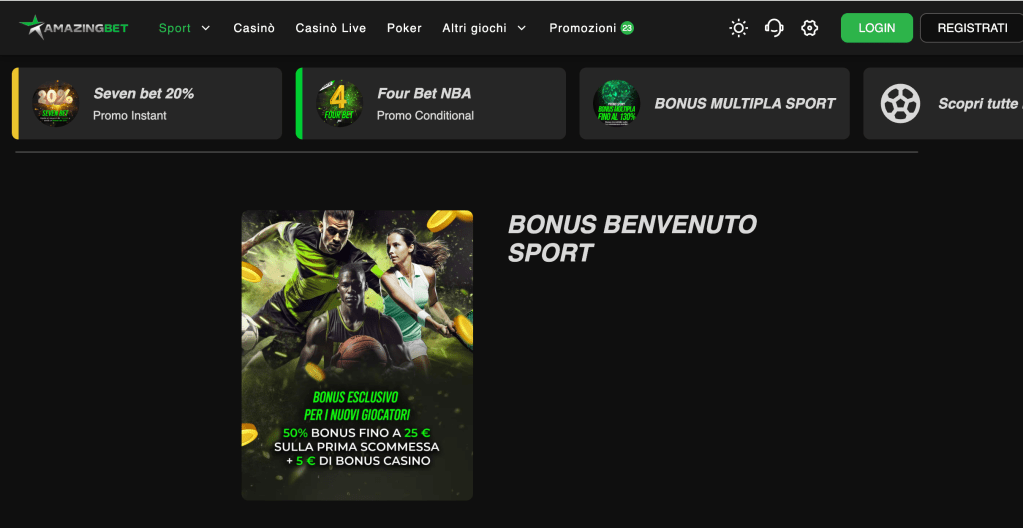 Se sei un nuovo utente di AmazingBet.it, hai la possibilità di approfittare di un generoso bonus di benvenuto che ti permetterà di iniziare la tua esperienza di gioco nel miglior modo possibile.