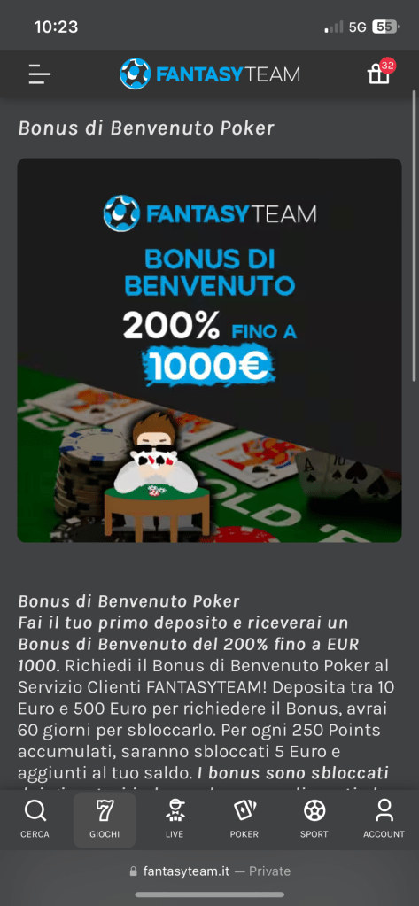 Fantasyteam offre anche altri Bonus di Benvenuto, sia per la sezione Casinò, sia per la sezione Poker.